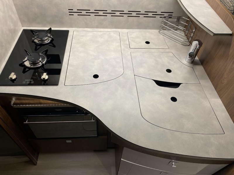 Abwassertank (fest), Außendusche, Kassettentoilette, Dusche, Frischwassertank (fest), Toilette / Waschküche